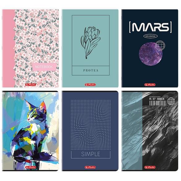 Zeszyty Herlitz Mix to klasyczna propozycja dla uczniów i osób, które cenią wysoką jakość oraz atrakcyjny wygląd w codziennym notowaniu. Miękkie, kartonowe okładki pokryte folią matową nadają im elegancki wygląd, zachowując estetykę przez cały rok szkolny. Wewnątrz znajduje się gładki i przyjemny w dotyku papier o gramaturze 70 g/m², który zapewnia komfort pisania bez przebijania na drugą stronę. Zeszyty dostępne są w miksie aż sześciu różnorodnych okładek – od prostych, stonowanych wzorów po bardziej kreatywne motywy, dzięki czemu każdy znajdzie coś dla siebie. To połączenie trwałości, funkcjonalności i stylu, idealne do szkoły i codziennych notatek.